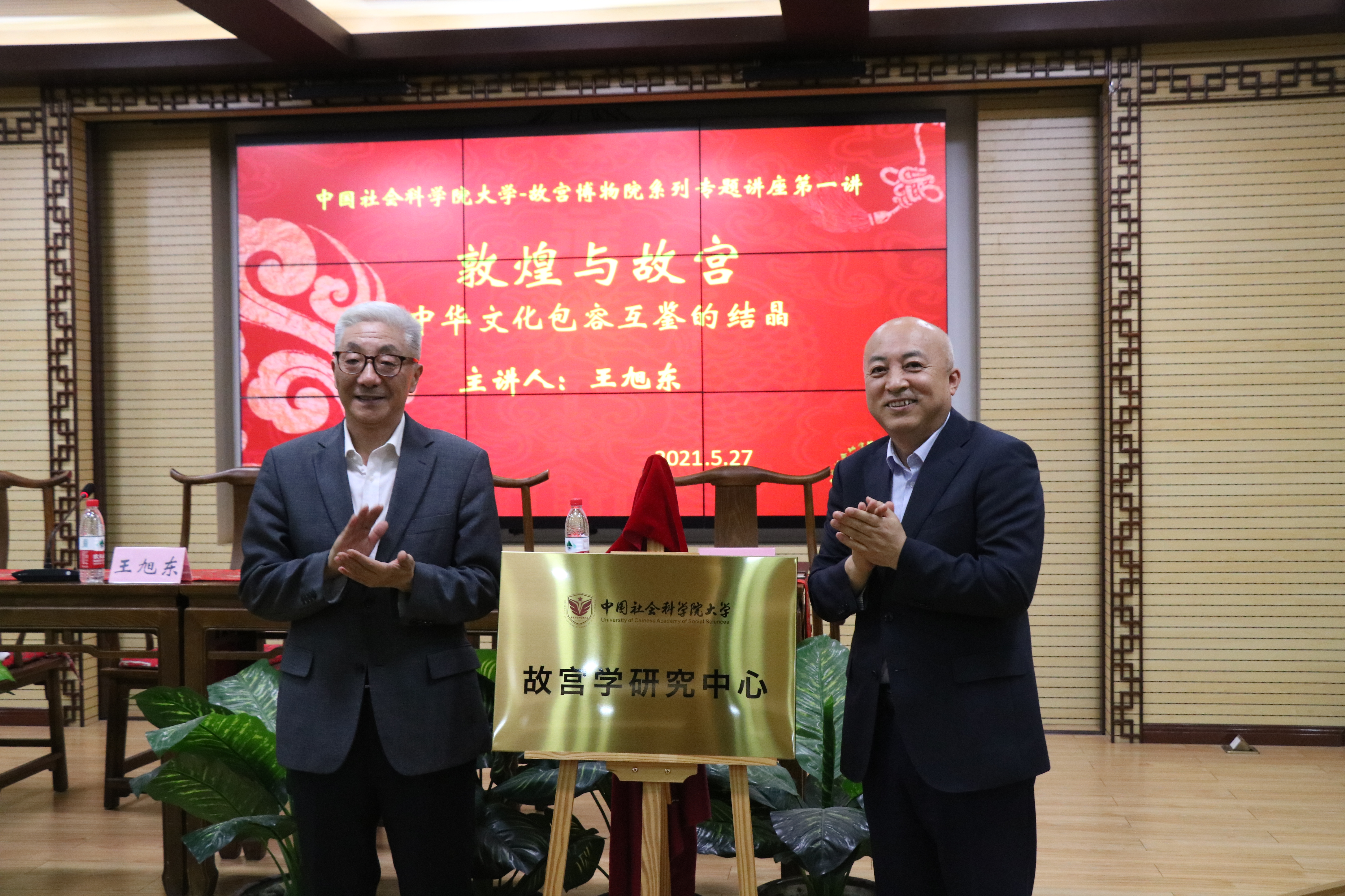 5月27日下午,故宫博物院王旭东院长、赵国英副院长带领相关部门负责人访问我校,与张政文校长、张斌副校长及相关部门和学院负责人举行座谈。会谈后,王旭东院长与张政文校长为我校故宫学研究中心揭牌,并为我校师生带来题为“敦煌与故宫-中华文化包容互鉴的结晶”的讲座。