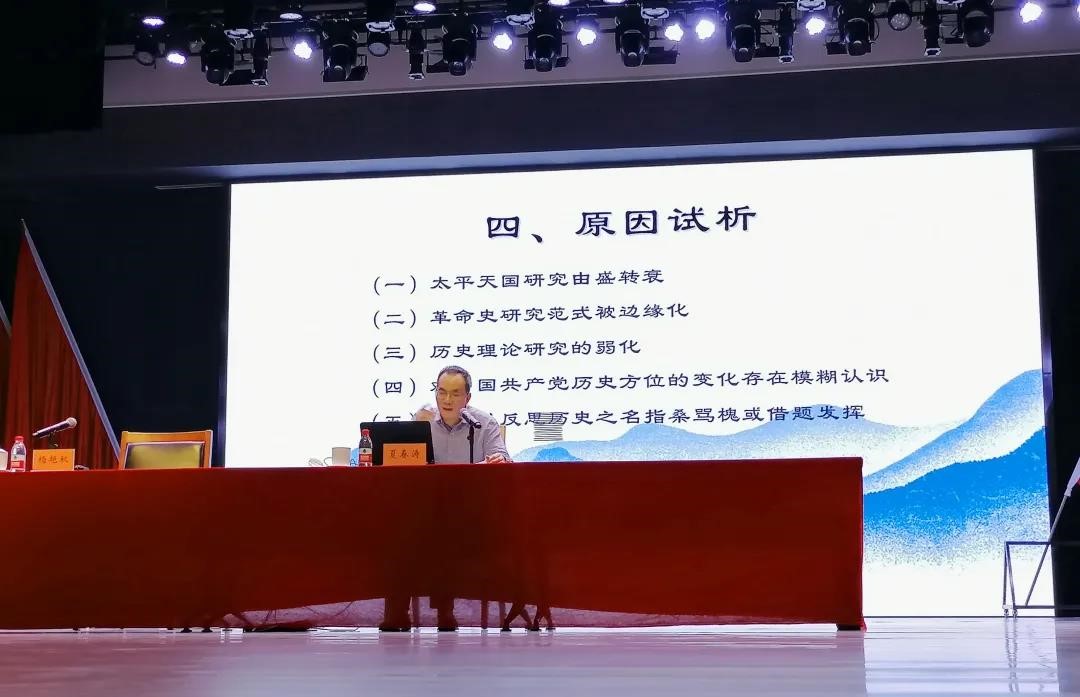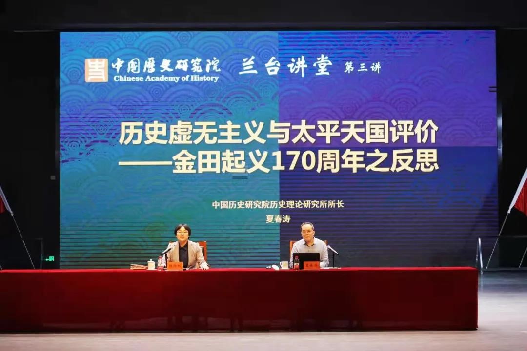 师生见面会之后,中国历史研究院举行了兰台讲座第三讲。中国历史研究院历史理论研究所所长夏春涛研究员以“历史虚无主义与太平天国评价——金田起义170周年之反思”为题,为同学们带来一场精彩的党史教育与历史学习相结合的讲座。此次讲座也是新澳彩官网