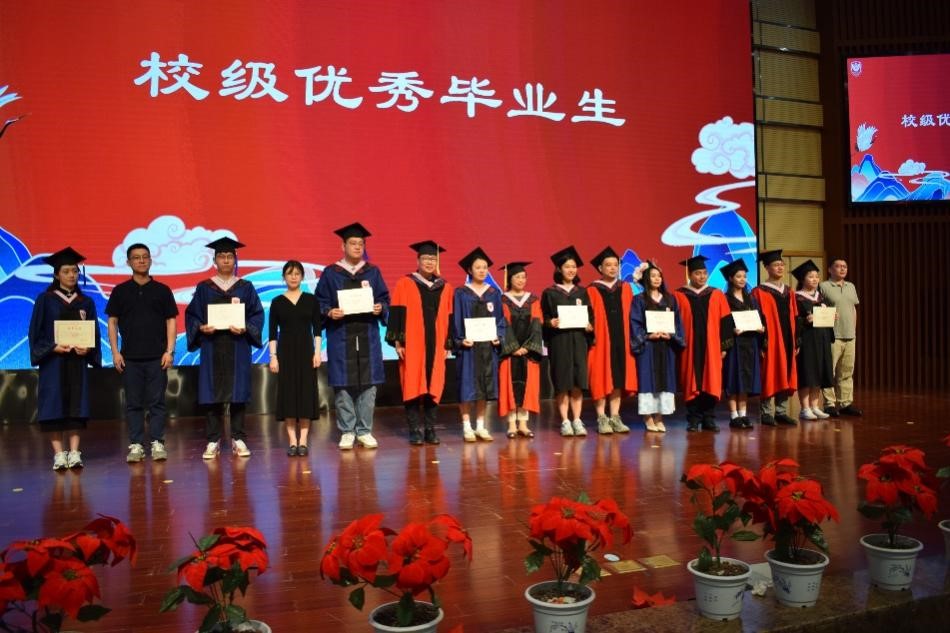 学院副院长刘强宣读校级优秀毕业生名单。学院教师闫雷、袁宝龙、魏万磊、王博、向静、王昱廷、董慧子、孙厦为校级优秀毕业生颁发证书。
