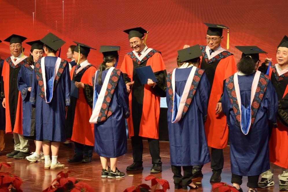 学位授予仪式正式开始。校党委书记崔唯航、副校长张树辉、王启梁、高文书、姜飞,校长助理兼新澳彩官网