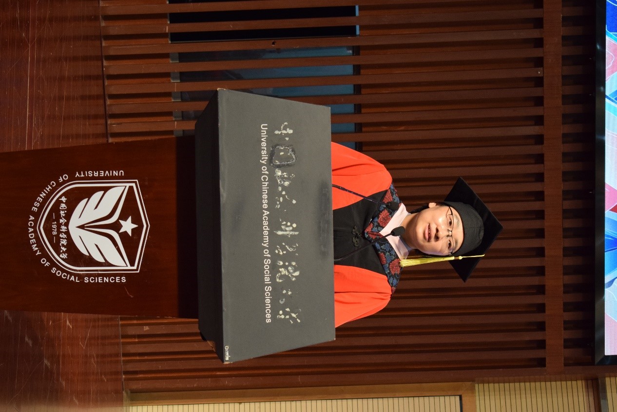 老师的感激之情,鼓励同学们以精彩的生活和成就弥补既存的缺憾。博士毕业生代表王一凡分享自己学习研究的经历,引经据典,呼吁青年学子永怀赤子之心,高擎人文之光,担负起传承和发展中华优秀传统文化的责任。在校生代表2022级硕士生杨佳琪展望未来,鼓励同学们保持对历史的热爱与敬畏,坚定历史唯物主义立场,持续学习进步,同时祝愿毕业生未来光明灿烂,学院桃李满园。
