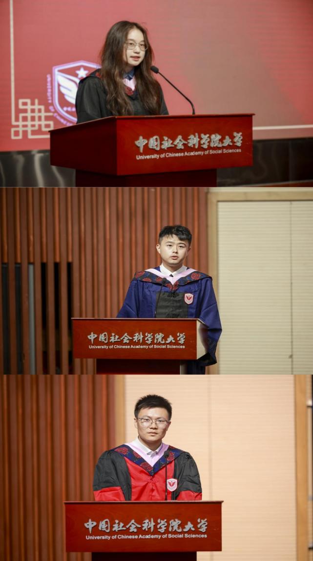 本科毕业生代表丁小玉同学表达了对母校、师长及父母的由衷感谢,并对同窗情谊深表感念。她表示将不负母校厚望,努力拼搏,以优异成绩回报母校。硕士毕业生代表王梦恒同学回顾了三年忙碌而充实的求学历程。他表示,前辈师长严谨的治学态度和深厚的学识,不仅深化了他对探索文明意义的理解,更淬炼了他的学术热忱与精神品格。博士毕业生代表项琦同学分享了自己在科研探索中的心路历程,以及导师在学术道路上给予悉心指导的难忘点滴。他展望未来,表示将继续深耕历史研究,在数字时代积极探索新路径,以历史之思回应时代之问,用学术成果践行学者使命。