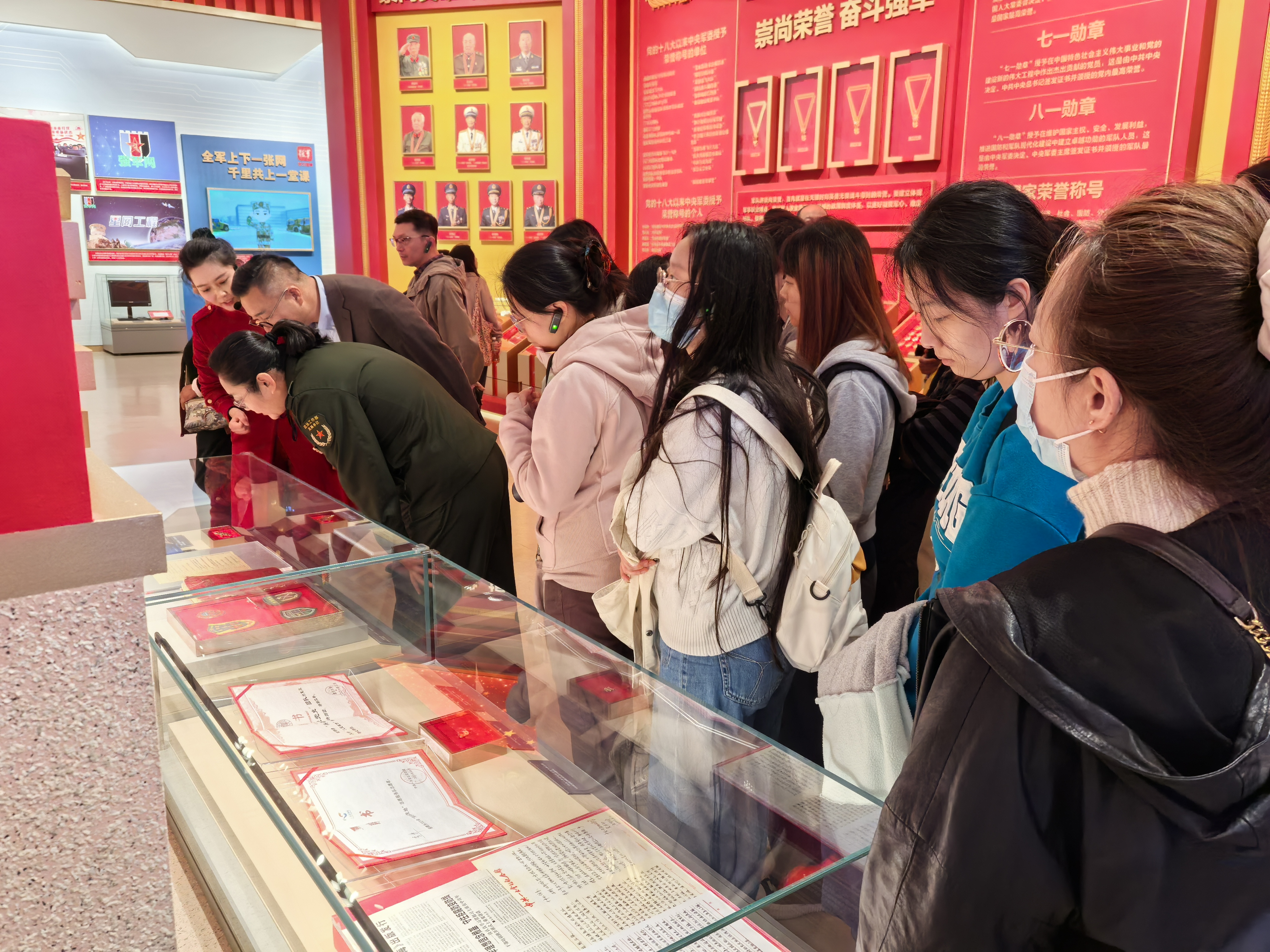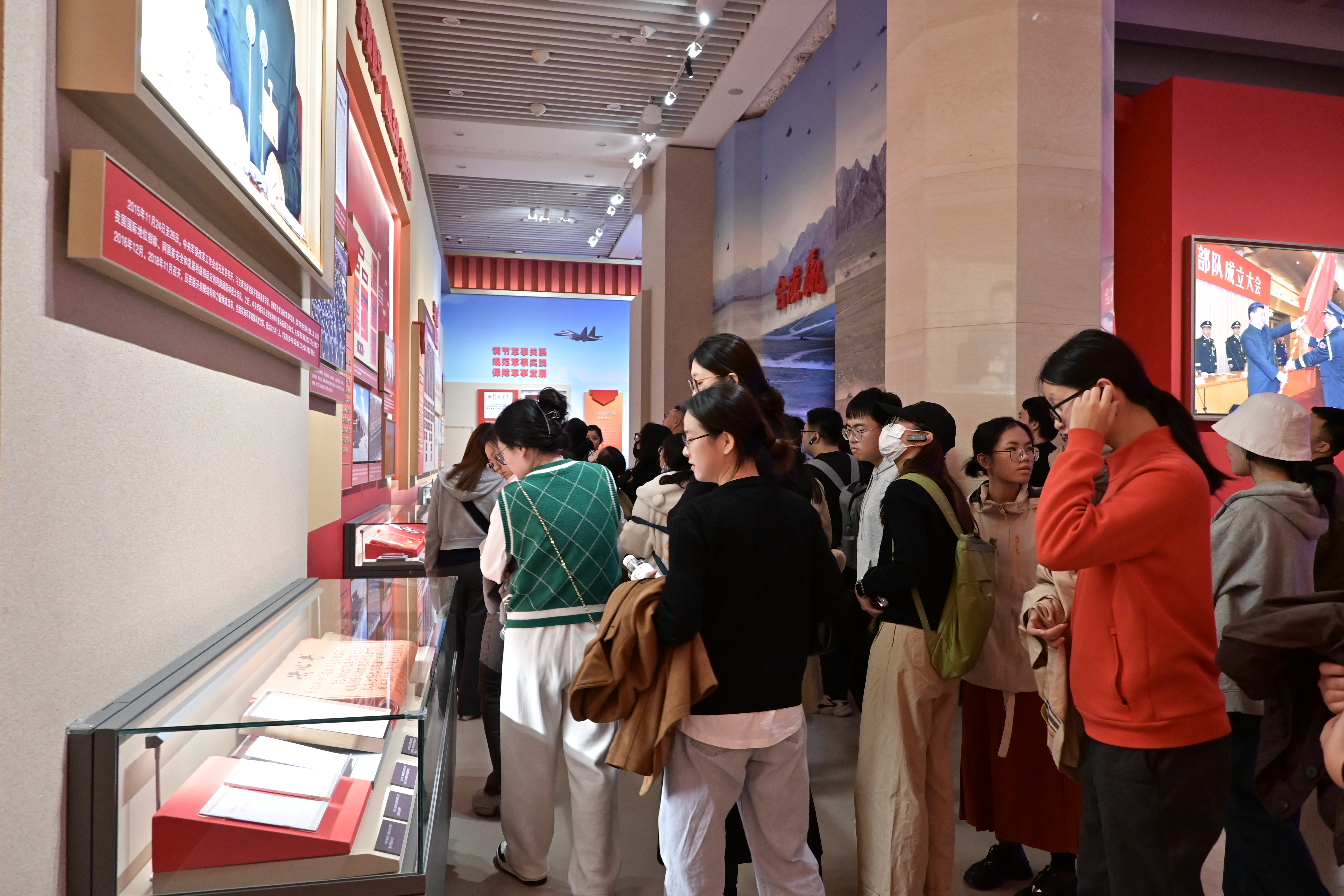 学子参观了《领航强军向复兴——新时代国防和军队建设成就展》展厅,主题展览全方位展现了习近平主席领导人民军队的全面改革实践,包括深入推进反腐强军、改革强军、科技强军、人才强军、依法治军、备战打仗等一系列新时代强军事业的伟大实践。从生动的模型样例、展览实录中,同学们深刻认识到新时代以来,我国军事领域的历史性成就和变革,对习近平强军思想有了更深刻的理解。