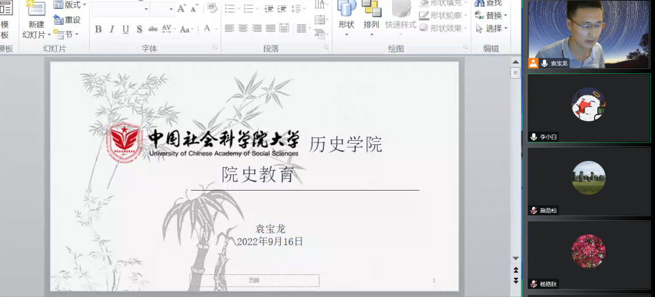 副院长袁宝龙教授为全体新生做院史教育专题讲座。袁院长以时间为序,通过翔实丰富的资料梳理和细致入微的史实考证,全景式地呈现出中国社会科学院历史学部、中国社会科学院研究生院历史学各教学系、新澳彩官网