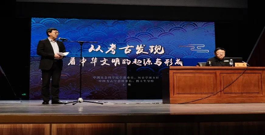 揭牌仪式后,中国历史研究院“兰台讲堂”第一讲开讲。兰台讲堂面向社会公众举办,邀请考古学、中国史、世界史等学科领域的知名专家担纲主讲,旨在努力为广大历史爱好者奉上一场场精彩的知识盛宴。中国社会科学院历史学部主任、学部委员王巍研究员以“考古学家眼中的中华文明起源”为题,做了精彩演讲。通过王教授对上古时代中华文明的介绍和展示,同学们真切感悟到了中华文明的源远流长和博大精深。