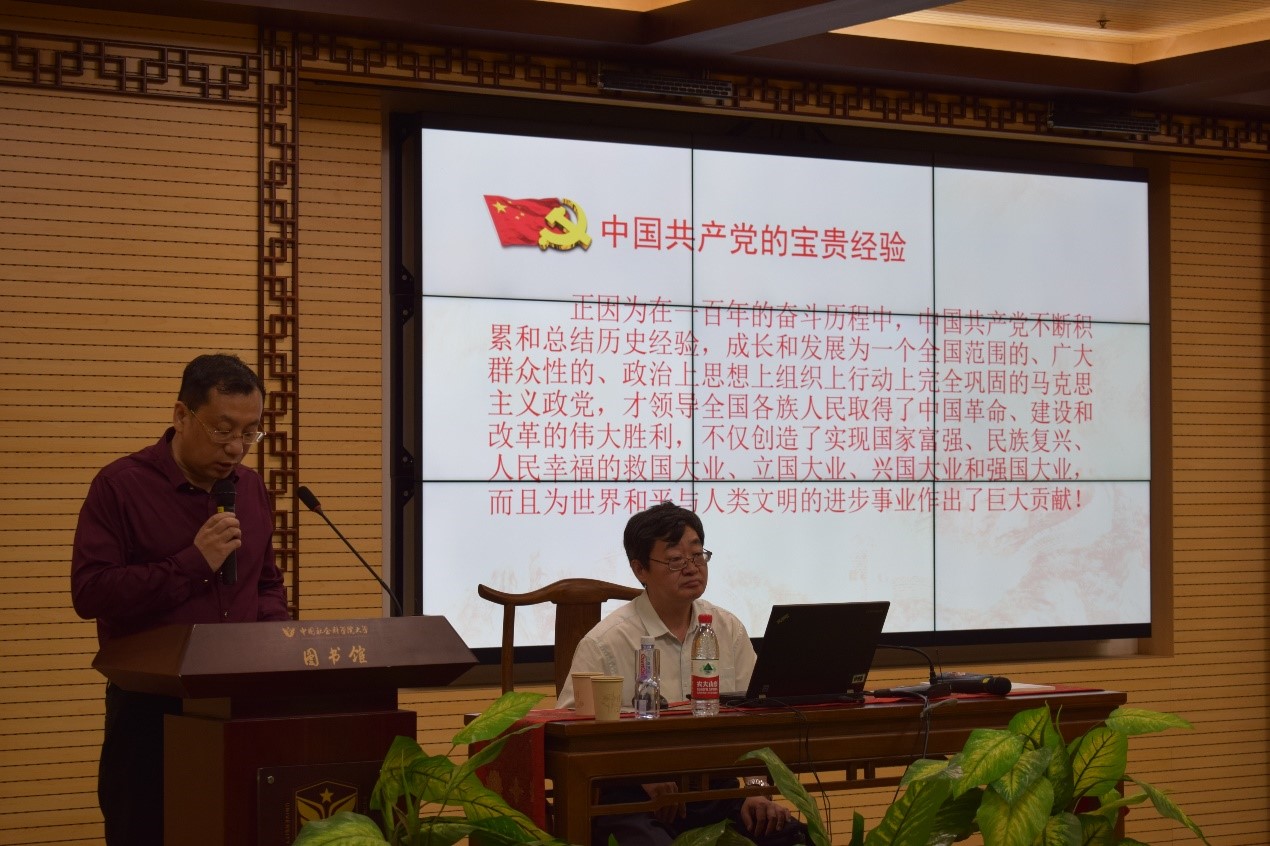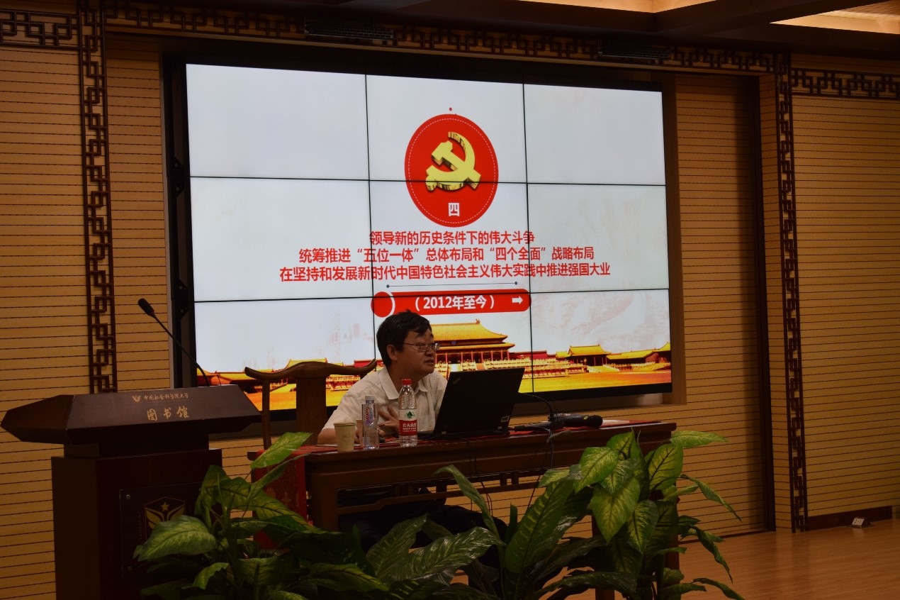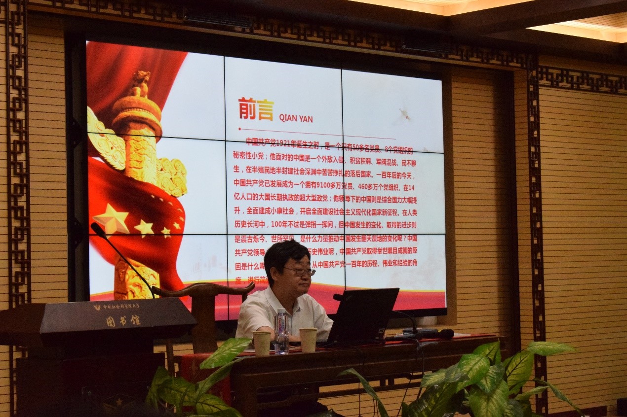 5月28日下午,中国社会科学院大学党史学习教育大讲堂系列讲座第六讲在我校笃学讲堂正式举行。中国社会科学院世界历史研究所党委书记、副所长,中国社会科学院大学马克思主义学院教授罗文东,给师生们带来题为“中国共产党一百年的历程、伟业和经验”得精彩讲座。罗文东教授兼任中国科学社会主义学会副会长、中国人学学会副会长等,长期从事马克思主义基本理论和当代资本主义、世界社会主义的研究和教学工作,取得了丰硕的研究成果。中国社会科学院大学副校长张斌主持了本次讲座。