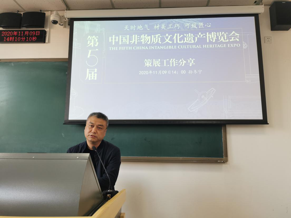 2020年11月9日下午,恭王府博物馆研究馆员孙冬宁在研教楼202教室为2020级文博专硕带来题为“天时地气 材美工巧 可致匠心——第五届中国非物质文化遗产博览会策展工作分享”专题讲座。讲座由新澳彩官网
